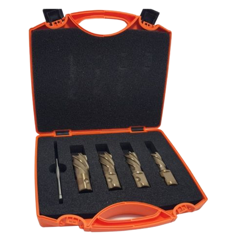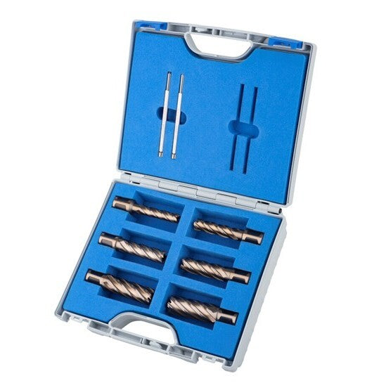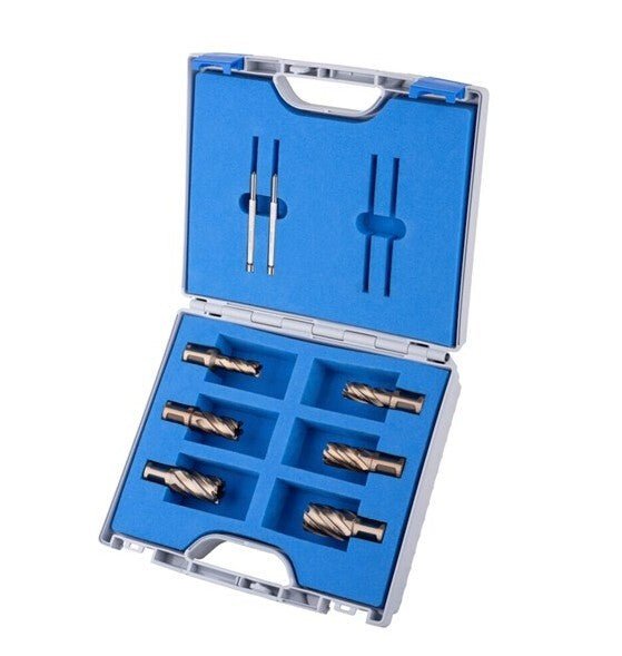 12|14|16|18|22|26 x 55mm DOC + 2 x Pilot Pins 8 piece HSS Core Broach Drill Annular Cutter Set in Case